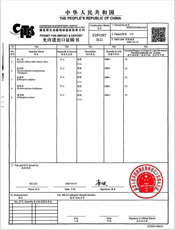 Successfully Completes Beijing's First Export of Endangered Cacti to Russia